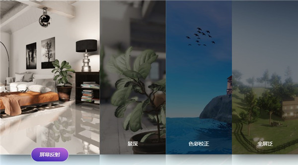 支持屏幕反射、景深、色彩校正、全屏泛光、环境光、抗锯齿及阳光射线等;