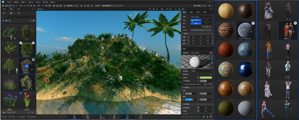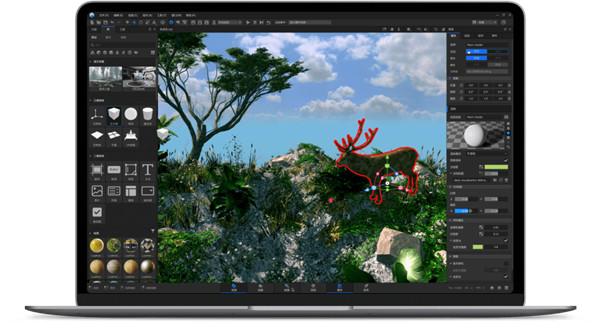 具有工程案例、三维模型、角色动作、材质、粒子、特效等海量素材资源,快速构建作品场景;