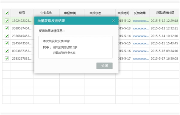 4、点击“批量获取反馈”按钮对所有注册企业进行申报反馈获取。