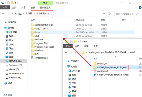 1、复制补丁文件夹ILIGHT_Flex_Server_x64到C盘根目录:C:\