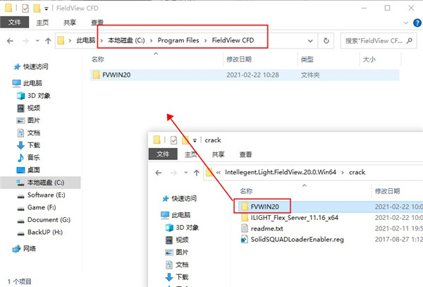 4、复制补丁文件夹FVWIN20到软件安装目录下;