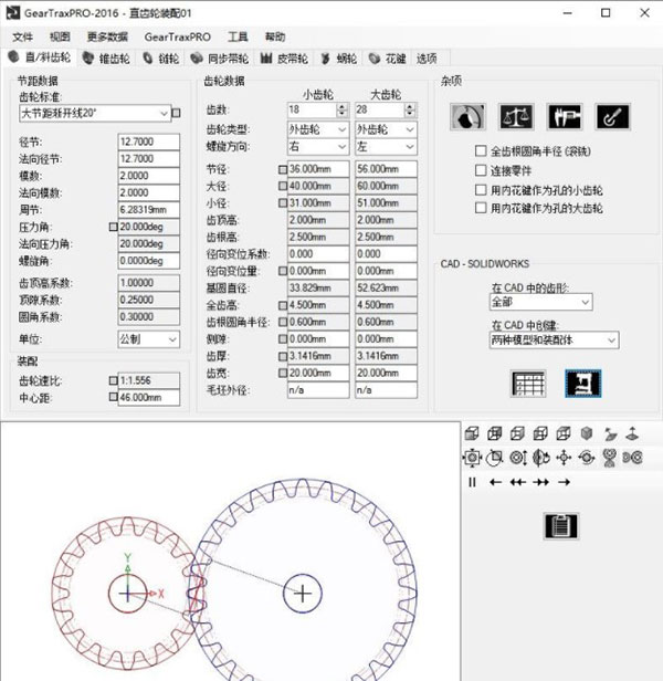 1、直观易用,功能强大;真正的精确渐开线齿廓,渐开线齿廓曲线可导入SolidWorks草图。2、英制径节 和公制模数可选;支持主要工业国家标准。