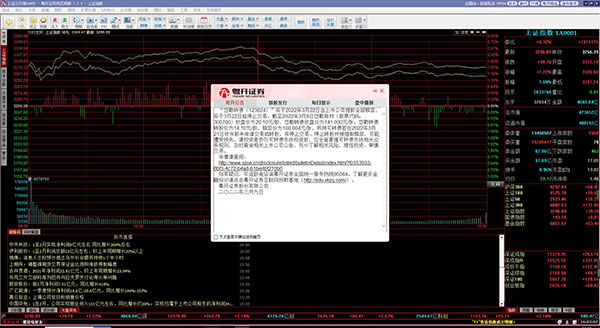 1、安装完成后,会自动进入粤开证券同花顺版软件的主界面,并弹出粤开证券最新公告 中心。
