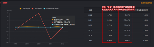 软件引入了“财年”概念,以上市公司年度分红除权日为起点划分“财年”,原创了“财年”股息率和资产增值率算法,更加客观的反映投资者持有股票后获得的真实现金分红收益和整体增值情况,具有更强的现实意义和借鉴价值。