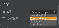 2、切换服务器。软件默认为不可用的Google Code服务器,可以切换为其他3个任意一个服务器即可正常连接。