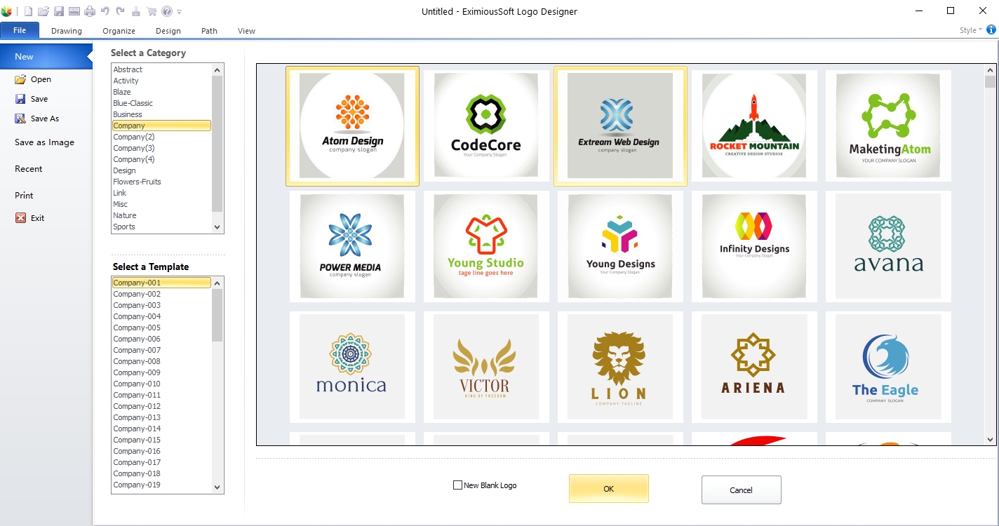 该计划是不够直观,弄清楚它做什么,而不需要读取用户手册。刚开始选择徽标模板,做一些点击或拖动进行修改。半个小时后,你可能会发现自己的一个标志,让你看起来就像一个标志设计新星!