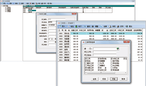 A9工资管理系统的主要功能有:员工名册管理、人员调动、工资项目定义、计算公式定义、工资数据录入、工资数据成批调整和自动生成银行数据文件及会计凭证等。同时还提供丰富的表报,包括:工资汇总表、工资明细表、个人所得税申报表、工资票面分配表等。