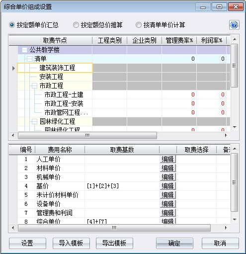 (3)第三步 点击下一步,弹出综合单价组成窗口,可对软件默认的综合单价组成模板进行修改。