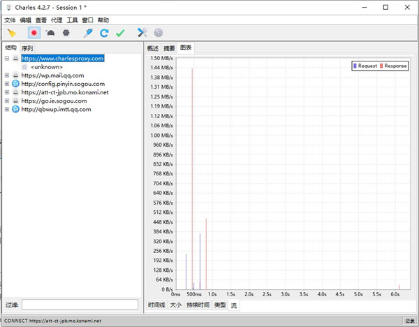 与此同时,Charles除了抓包功能,还为用户提供了数据分析和数据包修改上传功能,用户可以通过软件进行过滤网络请求、截取本地或其它链接设备上的网络封包、截取Https通讯信息、模拟慢速网络以及修改网络请求内容等不同处理。而且详细的图表系统还可以为用户带来直观的分析,让你能够时刻清楚的监控主机流量。