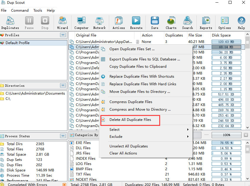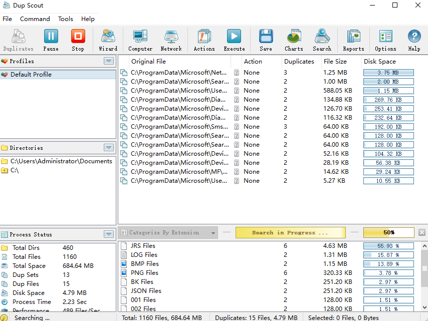 Dup Scout是用来清理电脑重复文件的工具,它可以帮助你找到电脑中各个磁盘中存储的相同文件,经过清理后可以节省你电脑中占用的硬盘空间。