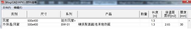 在进行材料统计的时候,可以在材料清单中看到风管道保温层的展开面积,使清单内容更加的详细