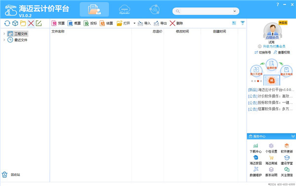 海迈云计价平台是海迈科技全新打造、拥有自主知识产权的一体化综合计价软件平台,又称海迈计价软件。平台以海迈造价会员体系为基础,依托互联网+云+大数据+BIM等先进技术,集成多种工程台账模式,整合海迈全方位的在线资源服务,创新性地将概算、预算、结算及投标报价的工程造价全过程全业务嵌入同一平台,旨在使客户更便捷、高效、快乐地工作!