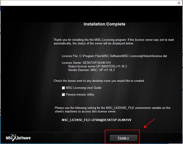 3、双击“msc_licensing_helium_11.16.3_windows64.exe”文件安装许可证管理工具;