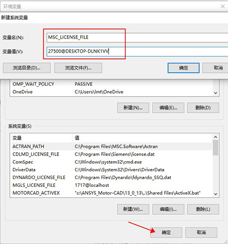 变量名:MSC_LICENSE_FILE