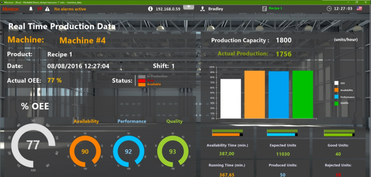 Movicon.NExT特别注重管理表演。快速通信和实时数据管理,充分利用图形加速器和Direct X的图形优化都能确保技术处于最佳状态而不会牺牲性能。