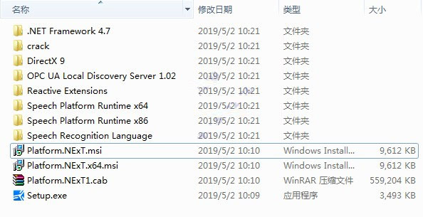1、下载解压,得到Movicon.NExT 2019 v3.4中文原程序和补丁文件;