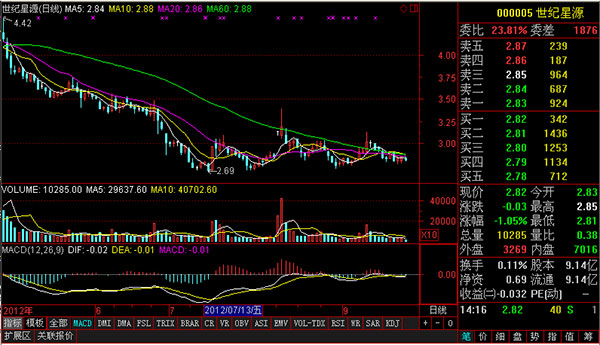 组合窗口下的分析图分成左右两部分:右边信息栏显示股票交易信息。左边有三个图,最上面为主图,显示的是K线,并叠加有收市价的5日、10日、20日、60日均线(分别为MA1、MA2、MA3、MA4),标在主图的左上角,字体颜色与指标画线颜色相同。下面两个是副图,分别为成交量走势(上面叠加有5日、10日均线)和指标线。