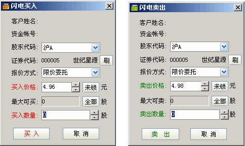 闪电买入\闪电卖出 打开方式: ▲ 键盘精灵 21:闪电买入 23:闪电卖出
