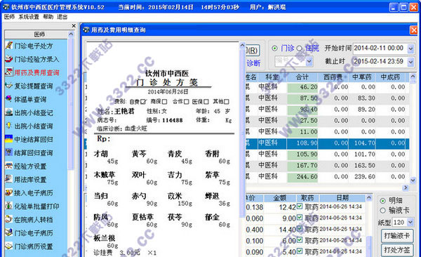 5、实用化:灵活的缴款、取药管理和丰富的查询、汇总功能,并提供各科室独立核算功能。