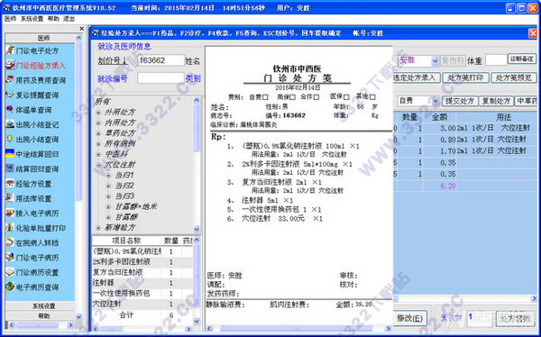 6、智能化:系统尽可能的减少了人为操作强度,如可用复制处方、经验处方、组合处方的录入,极大提高了处方录入效率,减轻了繁杂的录入工作量。
