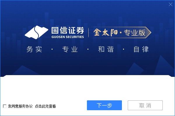 1、在本站下载下载国信证券金太阳网上交易专业版安装包,点击右下角同意开始安装