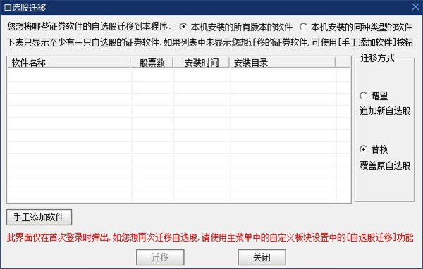 6、可以通过自选股迁移将其他证券软件的自选股迁移到本程序