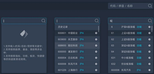 4、按照代码/名称/首字母来进行搜索,或者常用功能代码搜索都可以;