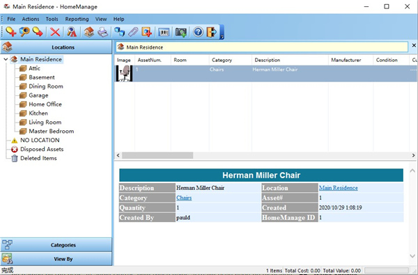 HomeManage官方版是由Liberty Street推出的一款家居库存管理软件,这款软件界面简洁,功能强大,可以将您的财产和资产进行有组织的记录,旨在帮助用户摆脱充满收据,保证和照片的文件夹。除此之外,这款软件能够自动统计,并且使用图形,图像,总计等轻松创建报告。保存并打印报告,或导出为多种不同格式之一,包括PDF,HTML,Excel,RTF,XML,文本等等,全方位满足用户的使用需求。另外,HomeManage 2020还可使用条形码扫描仪即时检索产品信息和条形码物品的照片,条形码数据库中有超过99045000个项目,每天都会添加新项目,你还可以打印条形码标签以附加到您的财产,让你轻松彻底的完成遗产规划。同时软件的报表设计器还允许用户创建标签和“文件卡”,甚至可以打印出条形码标签以附加到您的物业,稍后扫描条形码以显示与该项目有关的记录,通过科学合理的家庭资产规划,让整个家族成员受益。有需求的用户请下载体验。