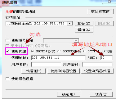 如果您正使用代理服务器上网,则也需要在“通讯设置”中对代理服务器进行设置。请按照下图所示设置代理服务器: