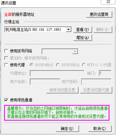 三、通讯设置-启用“绿色通道”服务器