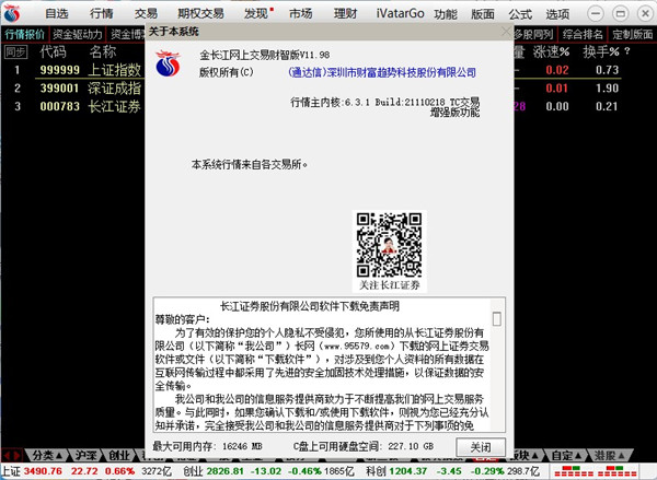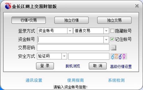 长江证券财智版是由通达信公司量身为长江证券定制开发的一款股票行情交易软件,它集成了系统、功能、报价、分析、扩展市场行情、资讯、工具等功能,让用户可以更加便利的使用。软件采取了3种不同的登录方式,用户可自由选择行情+交易、独立行情、独立交易,根据用户实际需要登录,让功能围绕着用户的使用来展开,让用户体验更加顺畅。长江证券财智版为股民提供了多界面的自由切换,软件操作简单快捷,可根据需要自由定制,相关方面的功能也很全面,无论是查看行情,还是出手交易,统统都没有问题,并且采用了新的登录方式,让通过客户端的登录速度更快、行情揭示速度有了显着提升,帮助你在股市变化中快人一步,夺取先机。