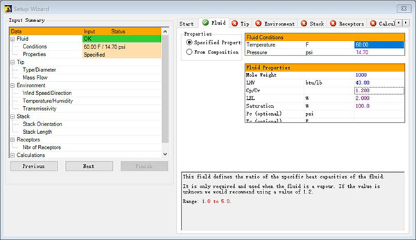 Schlumberger Flaresim整体操作使用非常简单,无需专业的培训和技巧,即可轻松上手使用。提供了许多相关性,以预测从一系列具有不同类型火炬尖的碳氢化合物流体的火焰中散发的热量,并且完备且友好的帮助文档可以随时帮助设计人员使用程序以及选择合适的设计参数。同时它还可用于对一系列火炬尖端进行建模,包括声波尖端,管道火炬尖端和蒸汽或空气辅助尖端。对于辅助火炬,可以计算出无烟运行所需的蒸汽或空气量。