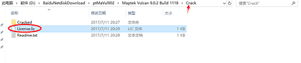 1、安装完成之后我们回到下载的资源包中,找到“Crack”文件夹,将里面的许可文件“License.lic”复制到电脑C盘根目录下