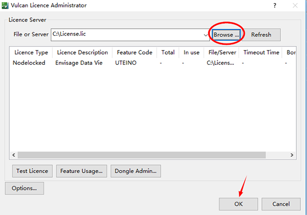 3、然后运行Maptek Vulcan 9,在弹出的窗口中点击“Browse”选择载入刚刚放在C盘中的许可文件“License.lic”然后点击OK,即可完成安装