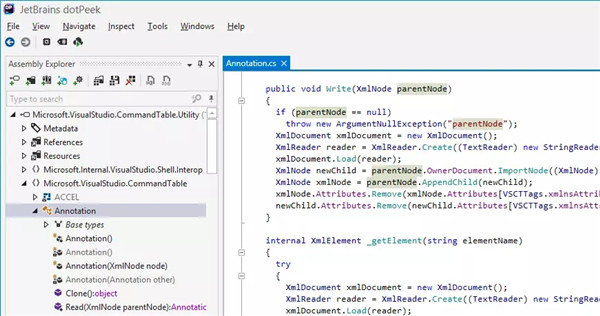 dotPeek 支持多种格式,例如库 (.dll)、可执行文件 (.exe) 和元数据文件 (.winmd)。
