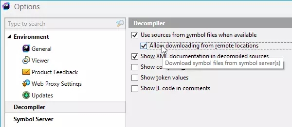 反编译代码聊胜于无,不过有时您可以将程序集与它的源代码相匹配,那么为什么不利用这一点呢? dotPeek 可以根据 PDB 文件识别本地源代码,或者从 Microsoft Reference Source Center 或 SymbolSource.org 等源服务器中获取源代码。 此外,dotPeek 可以生成 PDB 文件。