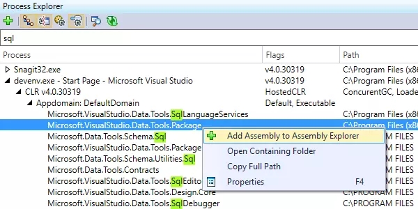 筛选列表以查找您正在寻找的模块或进程,然后将其程序集添加到Assembly Explorer中进行更深入的调查。