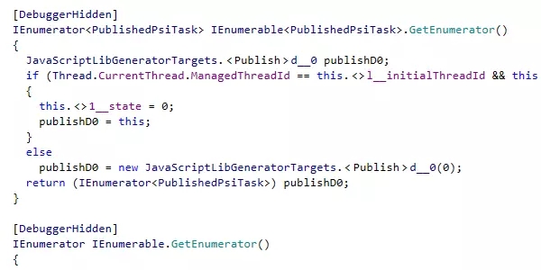 您可以选择显示某些编译器转换,从而使 dotPeek 显示的代码结构与编译器转换后的代码结构非常相似。 这有助于了解编译器如何处理 lambda、闭包和自动属性等对象。