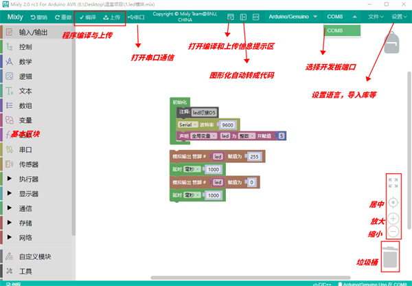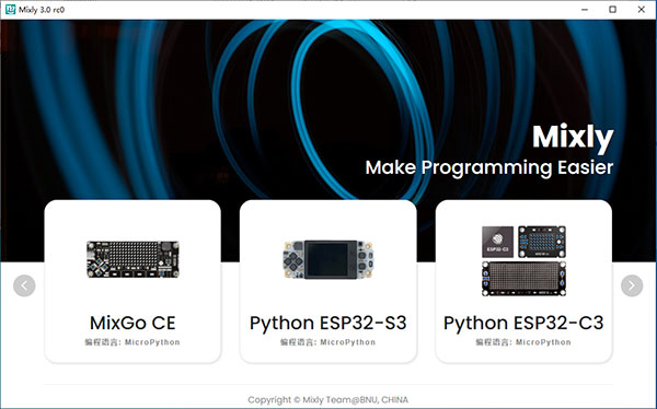 mixly3.0编程软件是一款非常好用且功能强大的米思齐编程软件,是由北京师范大学米思齐团队独立研发的一款图形化编程工具。它基于Google的Blockly图形化编程框架开发的免费开源的图形化Arduino编程软件。目的是为了配合Arduino UNO开发板套件使用,实现Arduino程序的图像化编程。所谓的图形化编程,就是采用模块化代码,用户无需写代码,只需用鼠标将模块拖到编辑界面即可完成Arduino程序的开发,很适合青少年以及没有编程基础的Arduino学习和爱好者使用。mixly3.0编程软件自动自带Java8运行环境,用户直接双击mixly.vbs即可使用,能够支持输入输出、程序结构、数学变换、文本输出、逻辑处理、传感模块和变量常量等应用模块,以及程序编写、程序编译、代码保存、程序上载、模块管理和串口监视等程序处理功能,真正做到从用户角度出发,科学实现Arduino程序的图像化编程。mixly3.0编程软件编程界面简洁明快,强大的预置模块,丰富的扩展库,是目前功能最丰富,操作最流畅的Arduino图形化编程软件,几乎可以替代Arduino IDE编程工具,使用mixly3.0编程软件,从此编程就真的像搭积木一样简单。如果你对Arduino程序的图像化编程感兴趣的话,那就前来本站下载Mixly试试吧!
