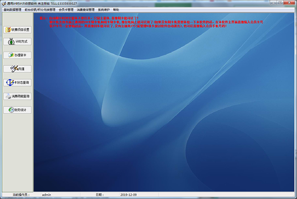 1、发卡管理:为新会员过来办理新卡时使用的,可以办理计时卡和计次卡,并记录会员的基础信息和办卡时的缴费金额2、充值管理:为会员实时进行充值管理,充值时,具有充次数和时长两种功能
