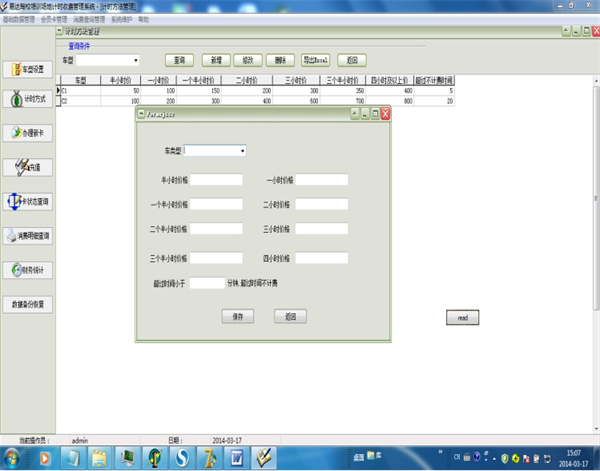 三、 计时方法设置:先点新增,然后系统会弹出一个输入计时金额的窗体,输入好数据后,点保存
