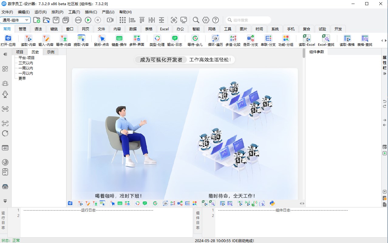 1、可视化流程设计 可视化界面,通过简单拖拽设置参数即可进行业务 流程编辑设计。 2、零代码与零差错 组件化无代码设计,业务人员无需编程经验,全员皆可用; 自动执行,避免人为差错。 3、全天候-不间断 7*24 小时,全年无休;完全自主,无人值守; 人工投入更少,效率更高。 4、破除数据间壁垒 跨平台、跨系统、跨部门;多用户、多系统、 多场景协同;易集成与高扩展。 5、灵活的部署模式 本地私有化部署或云部署,无需改变任何业务或环境, 无侵入式快速部署。软件亮点