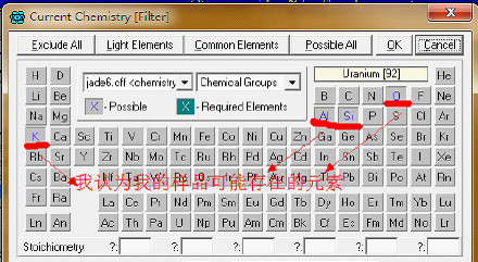 右击图9箭头所指按钮,出现图10所示标签。在General选项里,在图10所示的地方勾选,出现图11。选择你认为自己样品可能存在的元素,点ok。回到图10所示,再点ok。接下来又是选择物相了,方法同上,不再赘述。