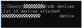 4、在cmd.exe中执行adb devices,会显示adb的版本。