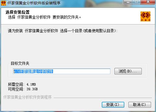 2、选择该软件的安装路径,默认路径为c:\仟家信黄金分析软件,可默认或点击“浏览”更换安装路径,完成点击“安装”