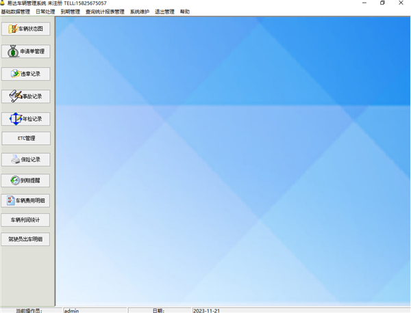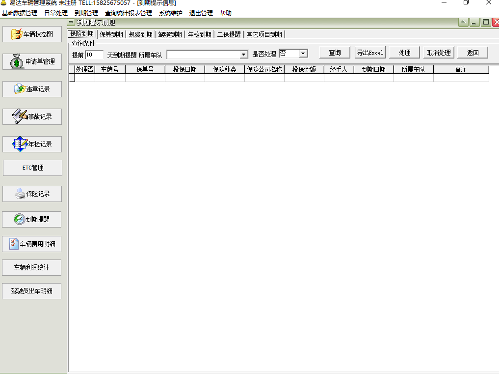 5、到期提醒包括年检到期提醒、保险到期提醒、保养到期提醒、规费到期提醒、驾照到期提醒。