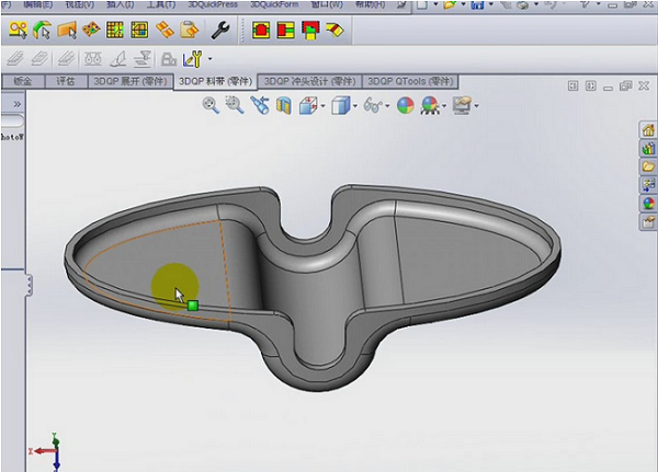 开始就以完成料带设计的工作来进行,3DQuickPress将会自动产生所有定义在此料带上的冲头。功能包括;