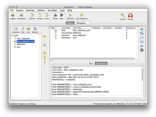 Automize是一款任务计划程序和操作系统、 自动化的自动化软件多个文件FTP传输,FTP 监视器,Web 下载通过代理或安全站点的工具。监测网站下载修改过的 Web 页面,检查并发送带有附件的电子邮件、 zip 存档或复制整个目录树,文本搜索,自动的数据库 SQL,telnet、按期平,其他任务目录显示器一样,打印和链接功能可以按顺序运行上述所有任务或有条件地取决于退出代码。第二或一分钟,或每小时、 每天、每周或每月的基础上,可以运行任务计划程序。功能前面板任务和日程显示和编辑,以及活动,输出日志和调试日志。它提供的电子邮件通知任务失败。您还可以在远程系统上的控制和调度工作。另外Automize可以执行的工作相当多,包括了多重的FTP上下传、利用Proxy的认证功能下载文件、电子邮件寄送、闹铃提醒、储存文件、等等。是不是心动了,有需要的朋友可以下载看看。