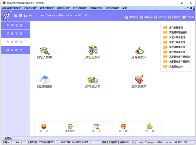 进销存系统中针对涉及到的商品,往来单位(即厂商和客户)、员工、仓库,账号等基本数据提供了强大的维护功能