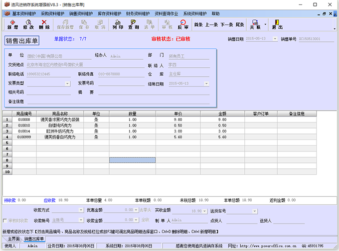 在销售管理的部分,系统中提供了从报价、订单、出货退货到收款的全面管理,单据间即可以自动沟暨转换